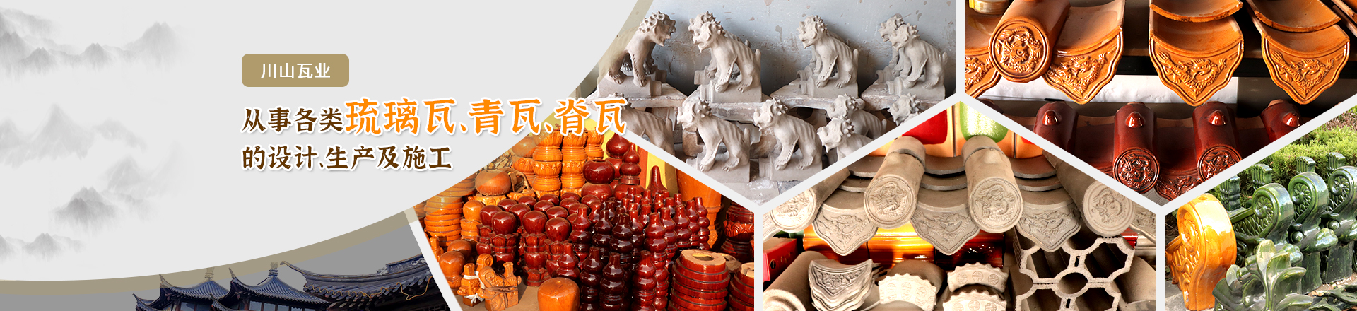 山東淄博川山瓦業(yè)位于山東省淄博市淄川區(qū)蒲松齡的故鄉(xiāng),公司從事各類琉璃瓦、青磚青瓦、園林古建瓦、鍍金瓦、磚雕石雕的設(shè)計、生產(chǎn)及施工多年,各種產(chǎn)品規(guī)格型號齊全,配套造型優(yōu)美,古香古色,產(chǎn)品具有色澤均勻,永不褪色,抗凍性強,耐酸堿等特點,主要產(chǎn)品有:板瓦、筒瓦、勾頭、滴水、當(dāng)勾、折腰、套獸、垂獸、跑獸、正吻、翹角、寶頂、龍鳳脊、花脊、筒脊、等系列產(chǎn)品。
